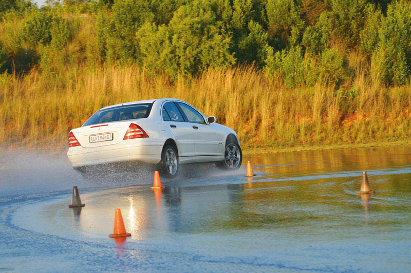 А самым неожиданным для нас стало то, что все взятые напрокат автомобили-агрегатоносители оказались с правым рулем: в ЮАР — левостороннее движение! И в первый день, по ходу «пристрелочных» заездов на незнакомых трассах, каждый из нас то и дело пускал левые колеса машины по обочине. Потом привыкли... Для оценки управляемости и сопротивления аквапланированию на прямой мы использовали Audi A4, остальные тесты нам помог выполнить Mercedes C180 Kompressor.