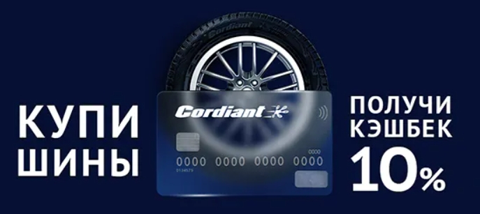 Кэшбэк 10% при покупке шин Cordiant